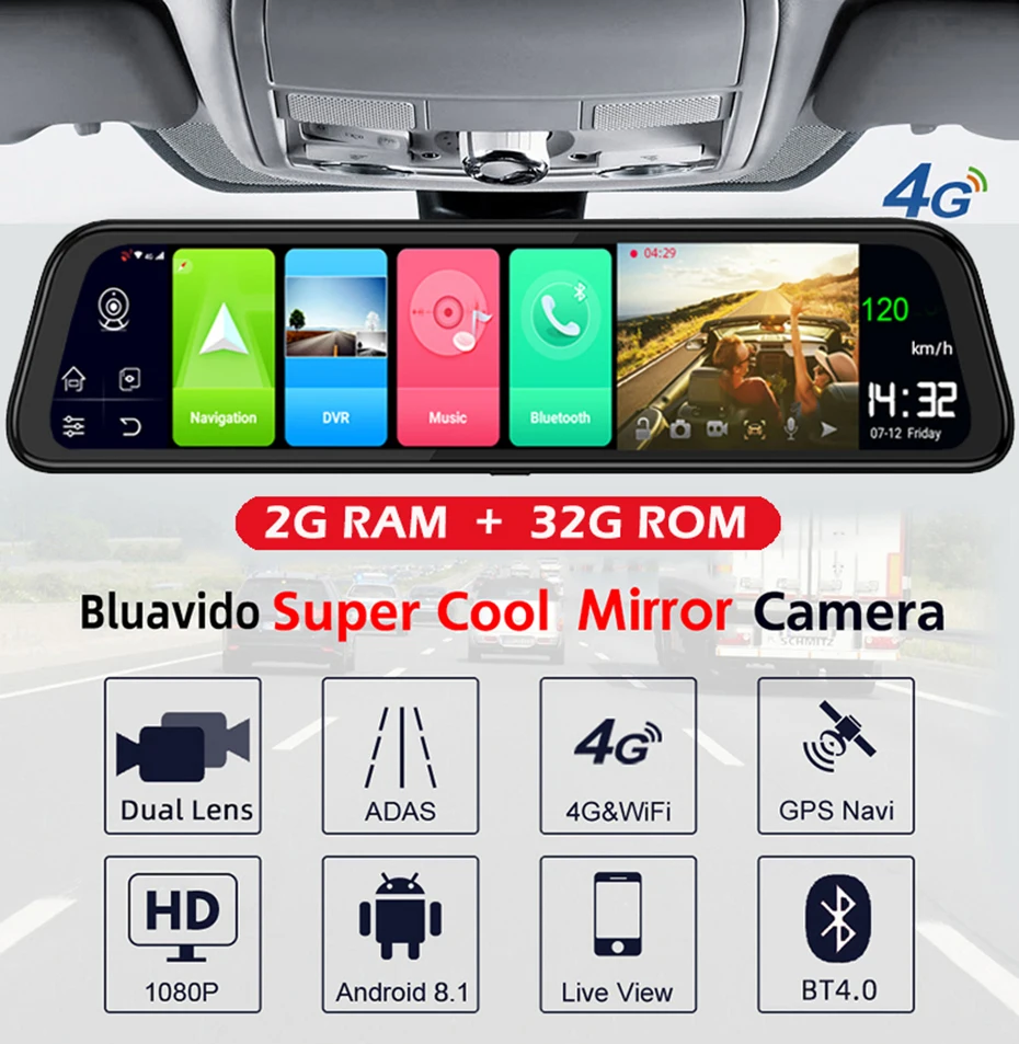 Special Offer Bluavido 12 \"IPS 4G Android 8.1 wyświetlacz tyłu samochodu lustro dvr nawigacja GPS 2G RAM FHD 1080P kamera na deskę rozdzielczą ADAS wideo samochodowe kamera do rejestracji wideo Discount 38% Today!