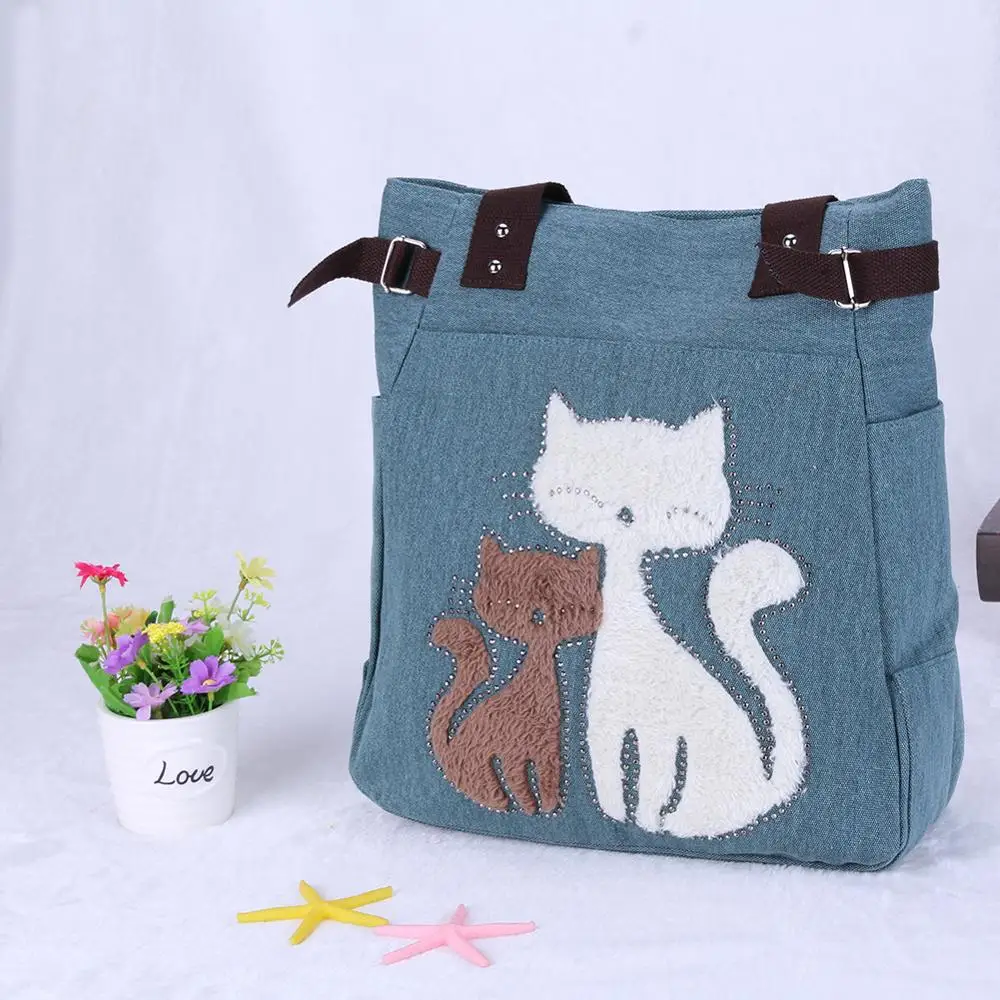 Special Offer Cudne słodkie kotki torebka brezentowa dla dziewczynek panie o dużej pojemności torba na co dzień kobiety przenośna solidna torba na ramię na zamek Bolsos Mujer Discount 28% Today!