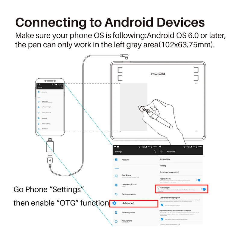 Special Offer HUION HS64 grafika rysunek cyfrowe tablety z funkcją otg długopis signature Tablet z rysikiem bez baterii dla systemu Android Windows macOS Discount 0% Today!