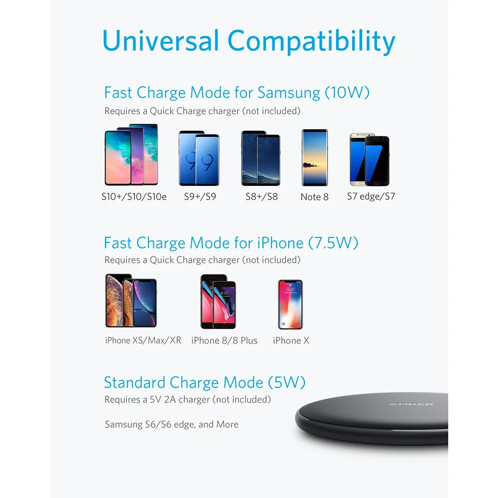 Special Offer Anker 10 W ładowarka bezprzewodowa Qi certyfikat bezprzewodowa podstawka ładująca dla iPhone Xs Max XR XS X 8 8 Plus Galaxy S9 S9 + S8 S8 + uwaga 9 itp Discount 46% Today!