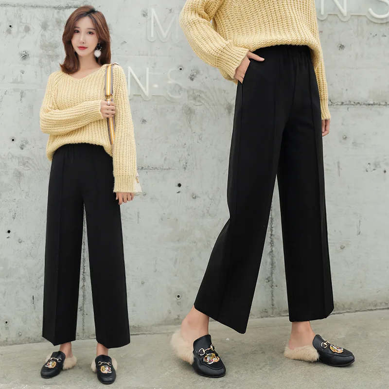 Special Offer Spodnie jesienno zimowe damskie moda luźne spodnie do kostek wysoka elastyczna talia wypoczynek ciepłe zagęścić spodnie z szerokimi nogawkami czarny szary Discount 40% Today!